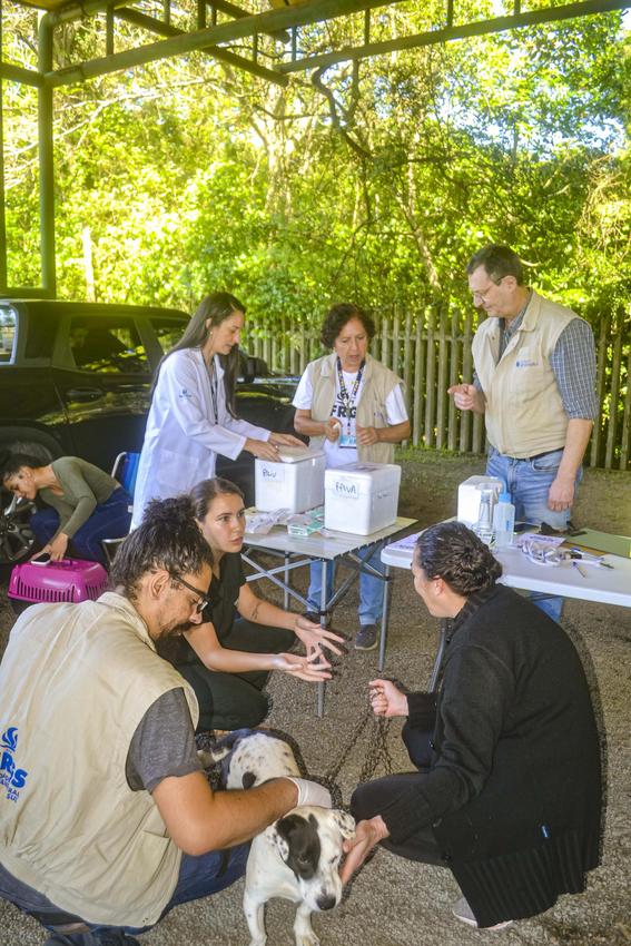 Porto Alegre, RS, Brasil, 09/10/2025: Mais de 100 animais foram atendidos na Ação da Unidade Móvel de Saúde Animal, na manhã desta quinta-feira, 9. A iniciativa é promovida pela Prefeitura de Porto Alegre, por meio do Gabinete da Causa Animal (GCA), em parceria com a Secretaria Municipal de Governança Local e Coordenação Política (SMGOV), por meio das subprefeituras. A equipe do GCA, com apoio de alunos e docentes da Faculdade de Veterinária da UFRGS, atendeu na Região Centro-Sul de Porto Alegre atendendo tutores de cães e gatos dos bairros Vila Nova, Cavalhada, Campo Novo, Teresópolis, Nonoai e Camaquã. Foto: Evelize Fabricio/GCA
