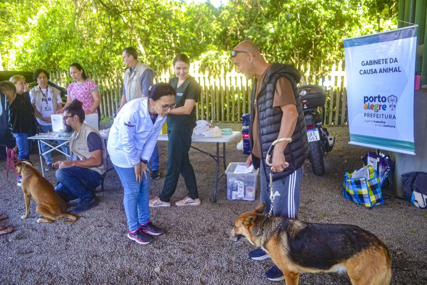 Porto Alegre, RS, Brasil, 09/10/2025: Mais de 100 animais foram atendidos na Ação da Unidade Móvel de Saúde Animal, na manhã desta quinta-feira, 9. A iniciativa é promovida pela Prefeitura de Porto Alegre, por meio do Gabinete da Causa Animal (GCA), em parceria com a Secretaria Municipal de Governança Local e Coordenação Política (SMGOV), por meio das subprefeituras. A equipe do GCA, com apoio de alunos e docentes da Faculdade de Veterinária da UFRGS, atendeu na Região Centro-Sul de Porto Alegre atendendo tutores de cães e gatos dos bairros Vila Nova, Cavalhada, Campo Novo, Teresópolis, Nonoai e Camaquã. Foto: Evelize Fabricio/GCA