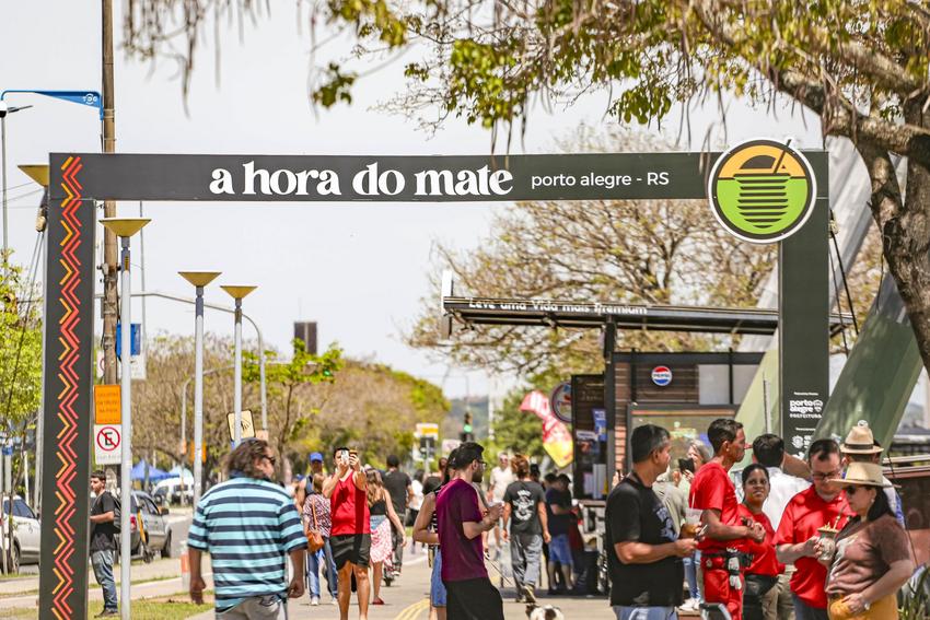 Porto Alegre, RS, Brasil, 11/10/2025: Neste sábado, 11, a capital gaúcha celebra uma das principais tradições gaúchas: o chimarrão. Com apoio da Secretaria Municipal de Desenvolvimento Econômico, Turismo e Eventos (SMDETE), o evento A Hora do Mate será realizado na Trecho 1 da Orla do Guaíba, a partir das 11h. Além das rodas de mate, a programação inclui espaços gastronômicos, shows musicais, brincadeiras para as crianças e a chamada Alameda do Mate, onde o público terá a oportunidade de conhecer mais sobre costumes e história do chimarrão. Foto: Alex Rocha/PMPA