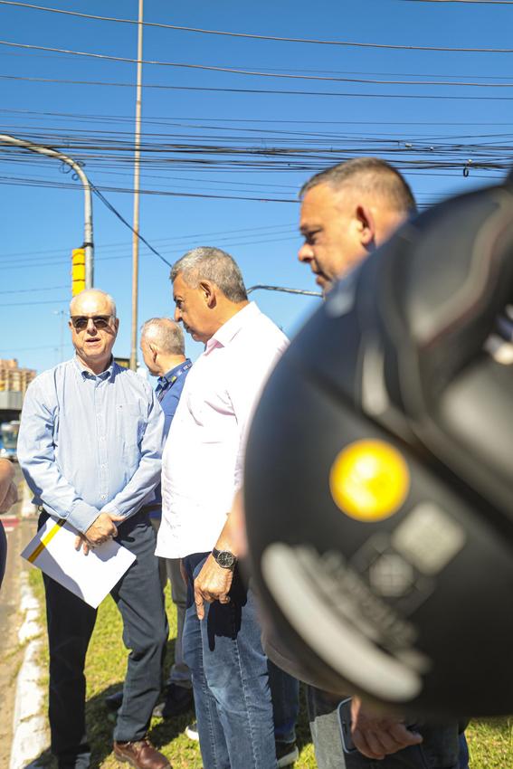 Porto Alegre, RS, Brasil, 14/10/2025: A Empresa Pública de Transporte e Circulação (EPTC) realizou nesta terça-feira, 14, a vistoria da nova sinalização implantada para a motofaixa da avenida Assis Brasil, na Zona Norte da Capital. O projeto foi implementado no sentido Centro-bairro da via, a partir do cruzamento com a avenida Joaquim Silveira, no bairro Sarandi. O prefeito Sebastião Melo, e o diretor-presidente da EPTC, Pedro Bisch Neto, acompanharam a agenda. Foto: Alex Rocha/PMPA