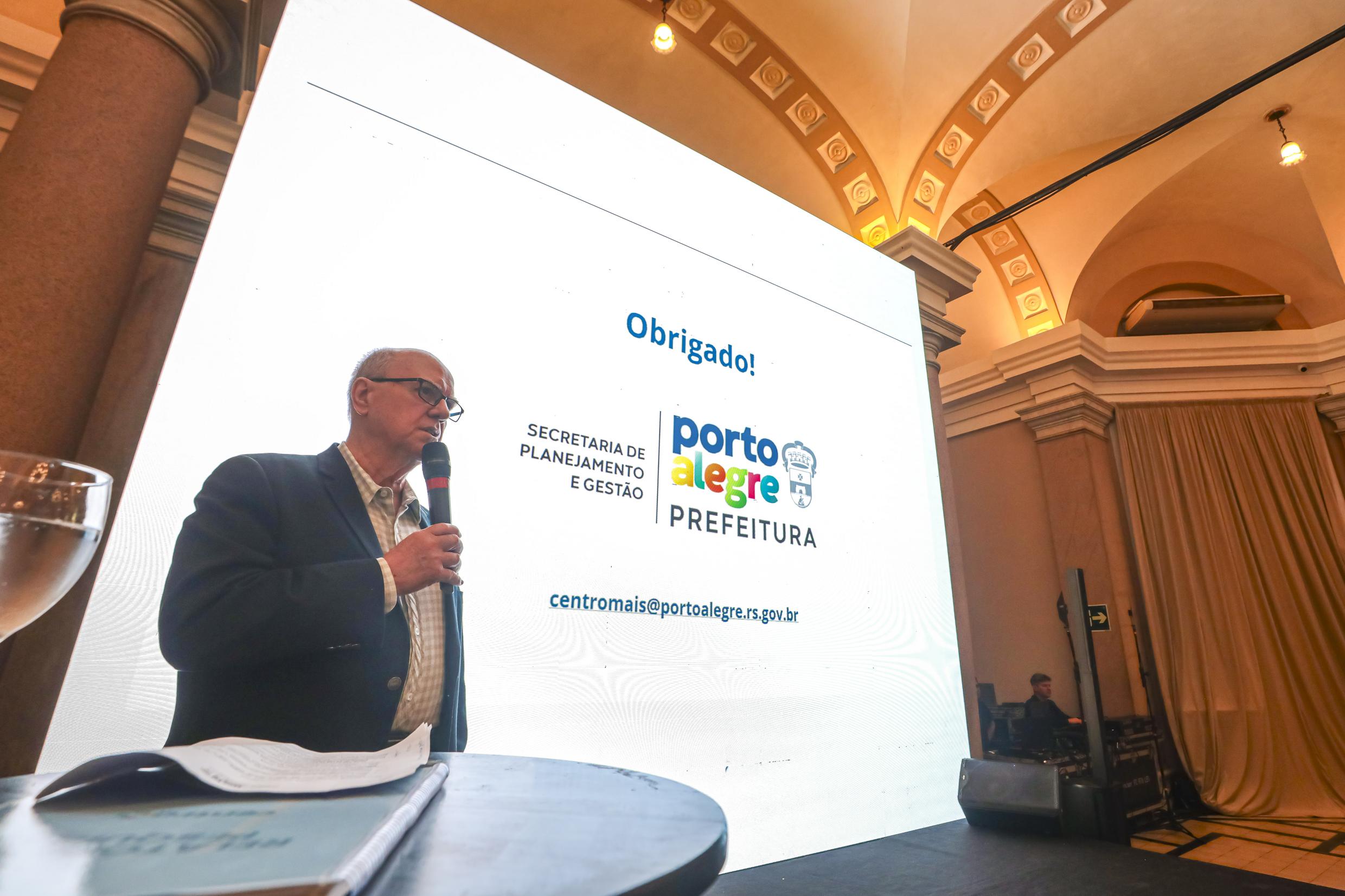 Porto Alegre, RS, Brasil, 14/10/2025: Nesta terça-feira, 14, a Prefeitura de Porto Alegre apresentou os resultados de uma pesquisa realizada durante o Seminário Centro+, em julho. O evento, que teve como foco a construção colaborativa do futuro do Centro Histórico, gerou dados e percepções que serão usados para a criação de novas políticas públicas para a região. O encontro, promovido pela Secretaria de Planejamento e Gestão, por meio do programa Centro+, ocorreu no Salão Nobre da Catedral Metropolitana de Porto Alegre. Foto: Alex Rocha/PMPA