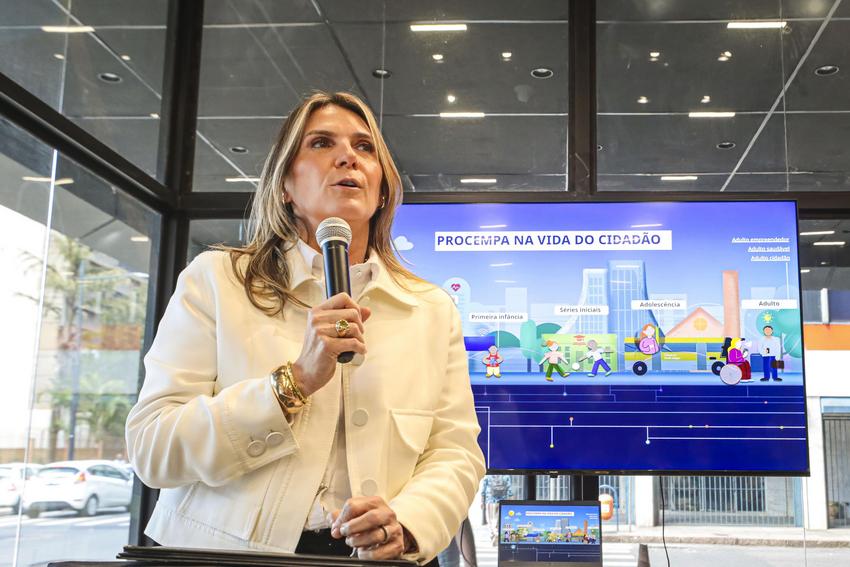 Porto Alegre, RS, Brasil, 20/10/2025: O prefeito, Sebastião Melo, e a vice-prefeita, Betina Worm, participaram, na tarde desta segunda-feira (20), da cerimônia de posse da diretora-presidente da Companhia de Processamentos de Dados do Município de Porto Alegre (Procempa), Débora Roesler. Foto: Alex Rocha/PMPA