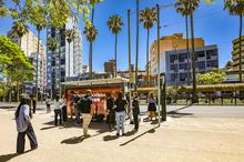 Porto Alegre, RS, Brasil, 22/10/2025: A Prefeitura de Porto Alegre, por meio da Secretaria de Mobilidade Urbana (SMMU), com apoio da Eletromidia e Claro, realizou nesta quarta-feira, 22, às 11h, a vistoria do primeiro ponto do abrigo amigo da cidade. O projeto transforma pontos de ônibus em locais de acolhimento, com possibilidade de acionamento de uma central de atendimento por vídeo. O primeiro ponto foi instalado na avenida Osvaldo Aranha, 909, bairro Bom Fim. No local, foi apresentado o funcionamento do sistema, além do impacto e os próximos passos da iniciativa na capital gaúcha. Foto: Alex Rocha/PMPA