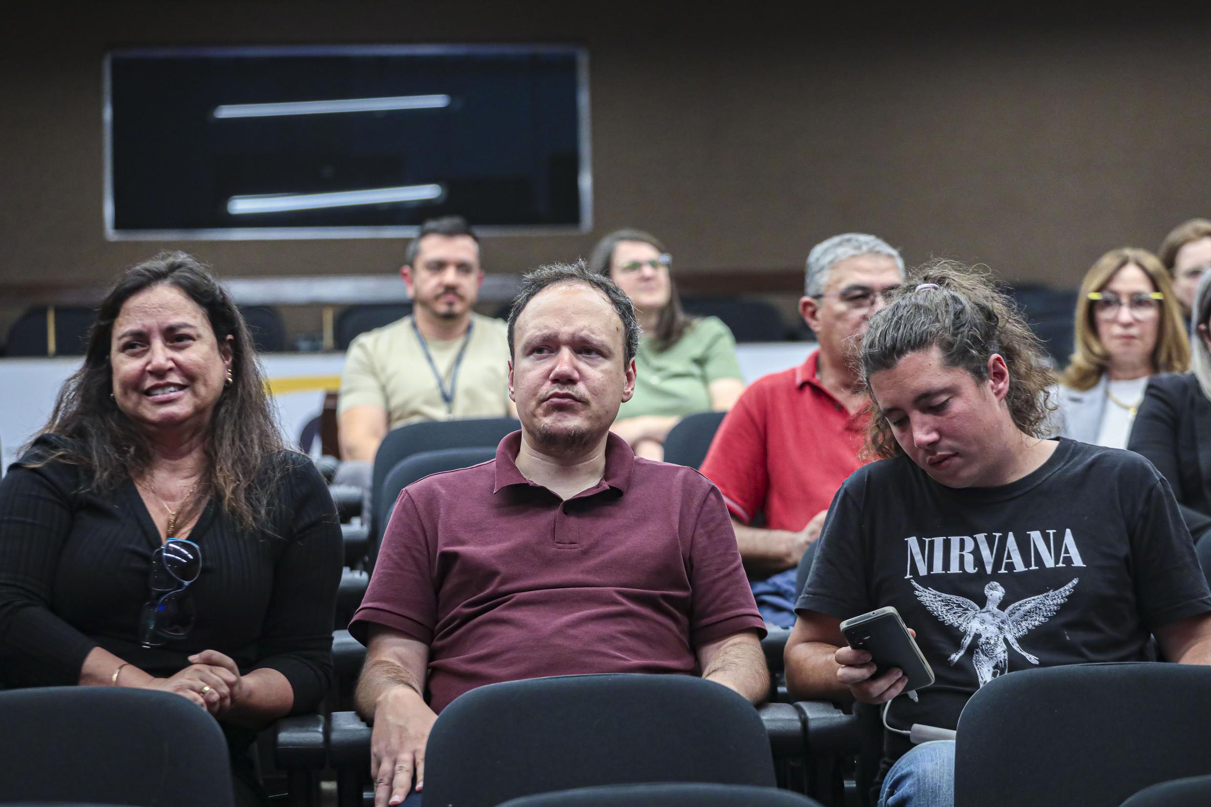 Porto Alegre, RS, Brasil, 31/10/2025: Em um evento que contou com a presença da vice-prefeita, Betina Worm, foi realizada na tarde desta sexta-feira (31), no auditório da Associação dos Auditores Fiscais da Receita Municipal de Porto Alegre (AIAMU), no bairro Centro Histórico, uma cerimônia para homenagear os servidores municipais pelo seu Tempo de Serviço. Foto: Alex Rocha/PMPA