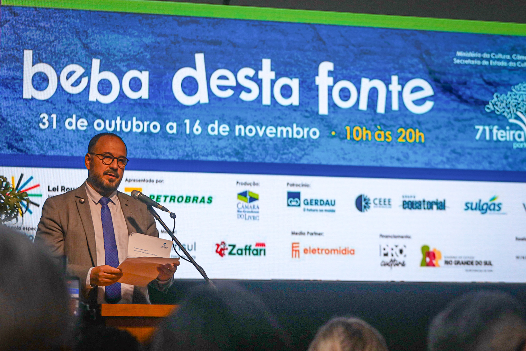 Porto Alegre, RS, Brasil, 31/10/2025: A 71ª edição da Feira do Livro de Porto Alegre, o maior evento literário do Rio Grande do Sul, abriu oficialmente nesta sexta-feira, 31, às 17h, no Teatro Petrobras Carlos Urbim, na Praça da Alfândega. A cerimônia teve o tradicional toque do sino e a presença de autoridades, da patrona desta edição, a escritora Martha Medeiros, e de representantes da Câmara Rio-Grandense do Livro e da Prefeitura de Porto Alegre. Foto: Alex Rocha/PMPA