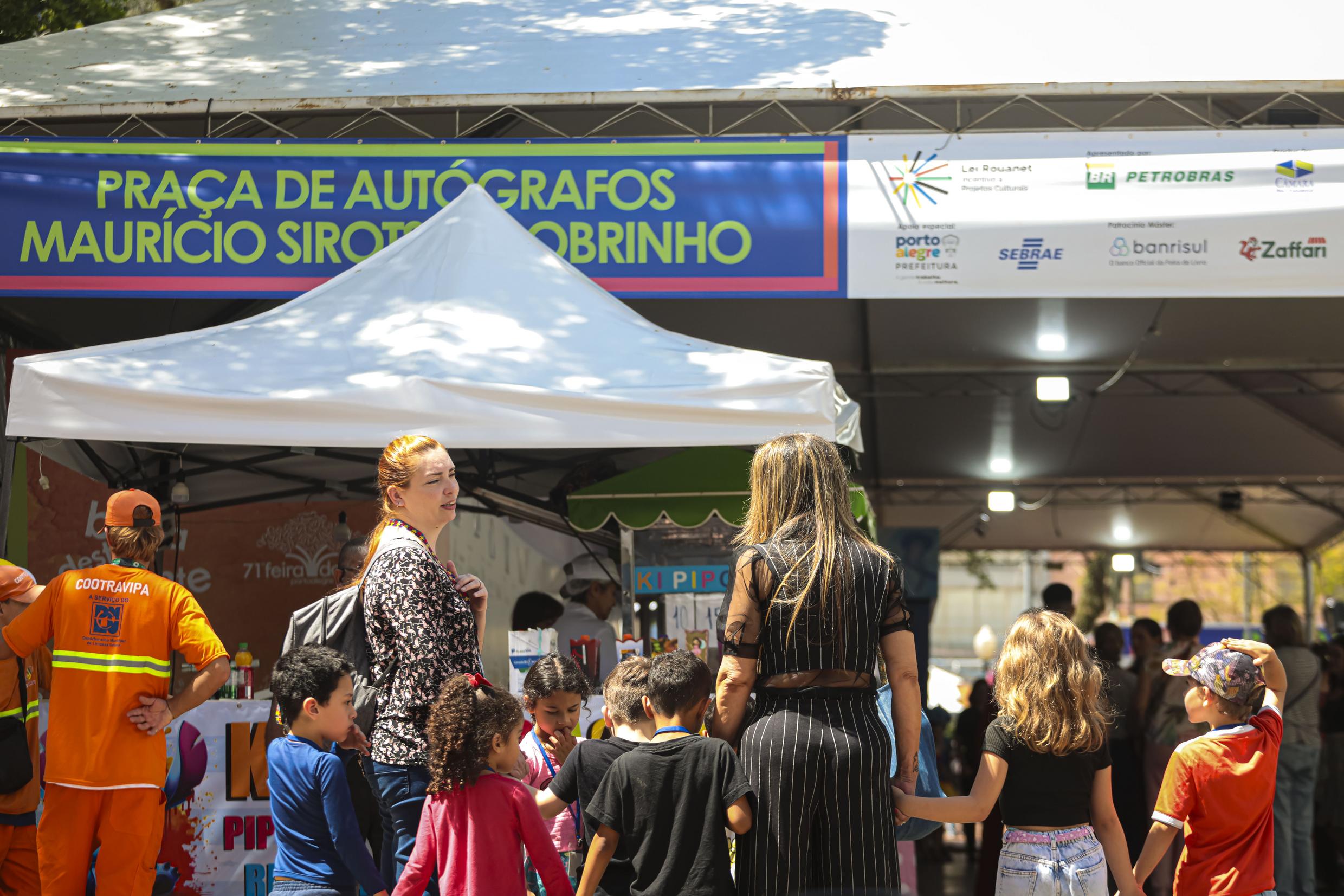 Porto Alegre, RS, Brasil, 04/11/2025: A movimentação de pessoas segue intensa nesta terça-feira (04) na Praça da Alfândega, no bairro Centro Histórico da Capital gaúcha, durante a 71ª edição da Feira do Livro de Porto Alegre. São 79 bancas de livros. No estande da prefeitura, localizado próximo à Praça dos autógrafos, o público pode conferir a exposição Patrimônio Imaterial: As Lendas Urbanas de Porto Alegre, organizado pela Secretaria Municipal da Cultura por meio do Museu Joaquim José Felizardo. A expectativa da organização é receber cerca de 1,5 milhão de visitantes, até o seu encerramento no dia 16/11. O horário de funcionamento é das 10h às 20h. Foto: Alex Rocha/PMPA
