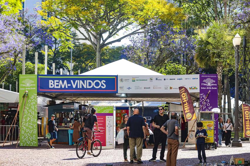 Porto Alegre, RS, Brasil, 04/11/2025: A movimentação de pessoas segue intensa nesta terça-feira (04) na Praça da Alfândega, no bairro Centro Histórico da Capital gaúcha, durante a 71ª edição da Feira do Livro de Porto Alegre. São 79 bancas de livros. No estande da prefeitura, localizado próximo à Praça dos autógrafos, o público pode conferir a exposição Patrimônio Imaterial: As Lendas Urbanas de Porto Alegre, organizado pela Secretaria Municipal da Cultura por meio do Museu Joaquim José Felizardo. A expectativa da organização é receber cerca de 1,5 milhão de visitantes, até o seu encerramento no dia 16/11. O horário de funcionamento é das 10h às 20h. Foto: Alex Rocha/PMPA