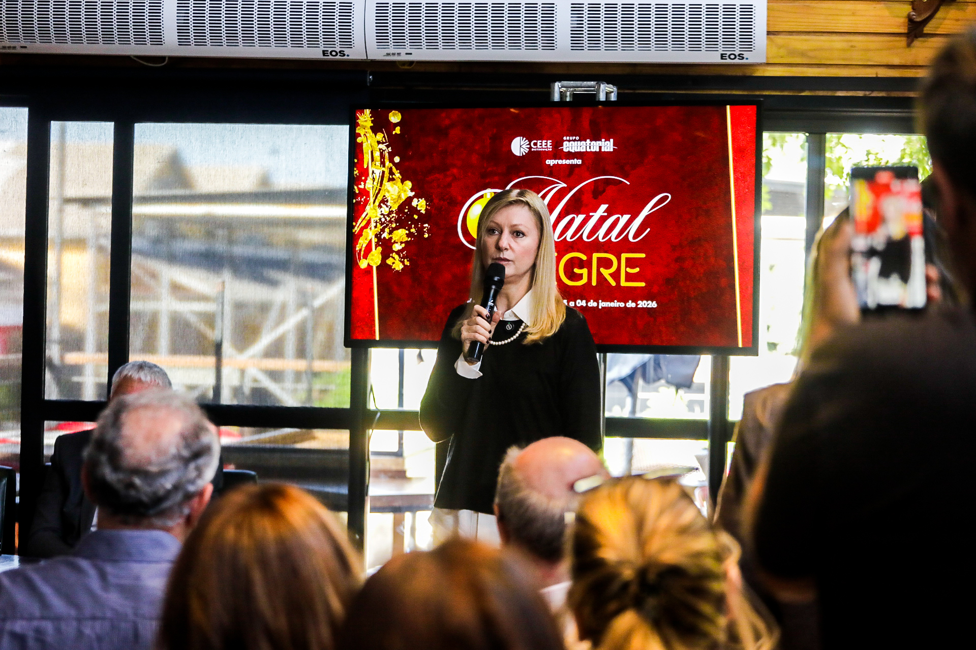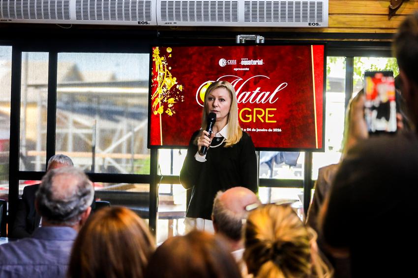 Porto Alegre, RS, Brasil - 06/11/2025: Nesta quinta-feira, 6, às 15h30, uma coletiva de imprensa no restaurante Mamma Mia, do Cais Embarcadero, apresentou o Natal Alegre, o maior evento natalino da Capital. A iniciativa marca o início das celebrações de fim de ano na cidade. Foto: Julia Ferreira/PMPA