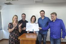 Porto Alegre, RS, Brasil, 13/11/2025: A prefeita em exercício, Comandante Nádia, participou, na tarde desta quinta-feira (13), no auditório do 18º andar do Centro Administrativo Municipal Guilherme Socias Villela (CAM), do ato de sanção de Leis dos Vereadores Jessé Sangalli e Rafael Fleck. Foto: Alex Rocha/PMPA