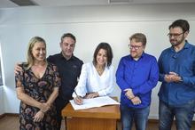 Porto Alegre, RS, Brasil, 13/11/2025: A prefeita em exercício, Comandante Nádia, participou, na tarde desta quinta-feira (13), no auditório do 18º andar do Centro Administrativo Municipal Guilherme Socias Villela (CAM), do ato de sanção de Leis dos Vereadores Jessé Sangalli e Rafael Fleck. Foto: Alex Rocha/PMPA