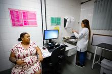 Porto Alegre, RS, 09/12/2025 Gestantes a partir da 28ª semana de gravidez já podem se vacinar contra a bronquiolite em todas unidades de saúde. O vírus sincicial respiratório (VSR) é um dos principais associados à doença e um dos maiores causadores de infecções respiratórias em recém-nascidos e crianças pequenas, sobretudo bebês. A vacina é indicada para grávidas de todas as idades, em dose única, a partir da 28ª semana, sem limite de idade gestacional. Na foto a vacina sendo aplicada na gestante, Juliana, que realiza o pré-natal na Unidade de Saúde Passo das Pedras II (av. 10 de Maio, 255). Foto: Cristine Rochol/PMPA