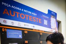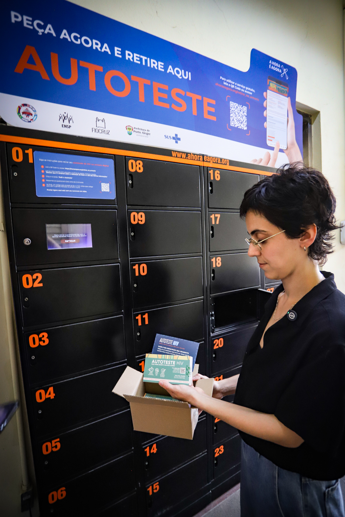 Porto Alegre, RS, 08/12/2025 Programa A Hora é Agora. Armário para retirada de kit com autoteste e orientações, localizado no interior do Mercado Público (entrada da Praça Parobé quase na esquina com Júlio de Castilhos). Foto: Cristine Rochol/PMPA