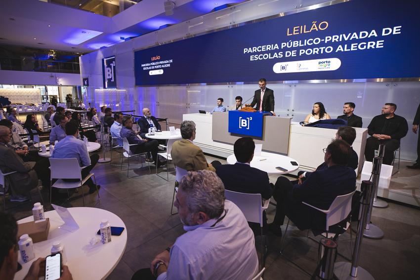 São Pailo, SP, Brasil - 10/12/2025 - Leilão da Parceria Público-Privada (PPP) de Escolas Bem-Cuidada acontece nesta quarta-feira, 10, na B3, em São Paulo. Lopcal: B3 – A bolsa do Brasil. R. Quinze de Novembro, 275 - Centro Histórico de São Paulo. Fotos: Cesar Lopes/ PMPA