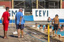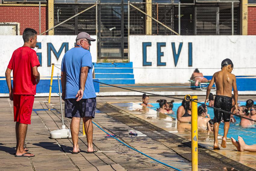 Porto Alegre, RS, Brasil, 18/12/2025: A temporada de verão nas piscinas públicas de Porto Alegre iniciou antecipadamente este ano. Os cinco centros comunitários, começaram os atendimentos ao público no dia 9 de dezembro, seguindo até 28 de fevereiro de 2026. Foto: Alex Rocha/PMPA