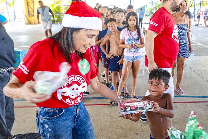Porto Alegre, RS, Brasil, 19/12/2025: Na tarde desta sexta-feira (19), no loteamento Santa Terezinha, foi realizada uma ação de Natal do Gabinete da Primeira-Dama. Foto: Alex Rocha/PMPA