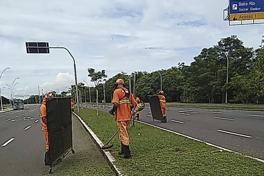 Porto Alegre, RS, Brasil, 29/12/2025: Equipes do Departamento Municipal de Limpeza Urbana (DMLU), preparam o entorno da Orla e do Parque Harmonia para a festa de Réveillon 2026. Foto: DMLU/Divulgação