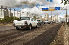 Porto Alegre, RS, Brasil, 08/01/2026: Teve início na quarta-feira, 7, a requalificação do pavimento asfáltico das rampas de acesso à avenida Mauá e ao Corredor Humanitário, pela avenida Castelo Branco, uma das principais portas de entrada de Porto Alegre. Os serviços são executados pela Secretaria Municipal de Serviços Urbanos (SMSurb). Foto: Alex Rocha/PMPA