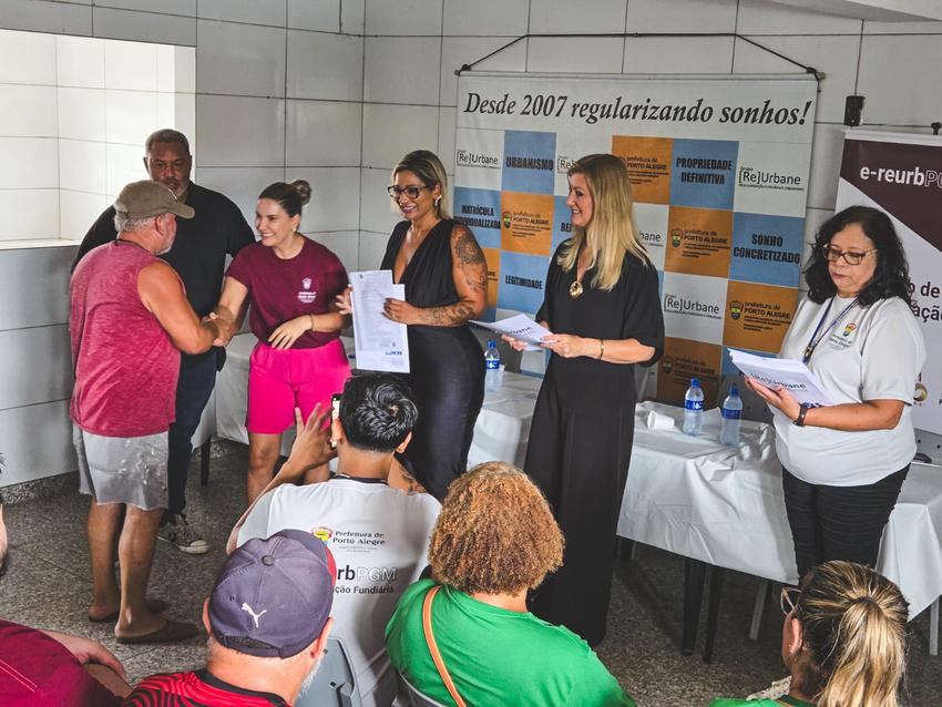 Porto Alegre - 17/01/2026 - Moradores do loteamento Costa Gama/Omar Pereira, localizado no bairro Aberta dos Morros, receberam neste sábado, 17, os títulos de propriedade de seus imóveis. Nesta etapa, foram entregues 34 matrículas. Foto: Giulian Serafim/PMPA