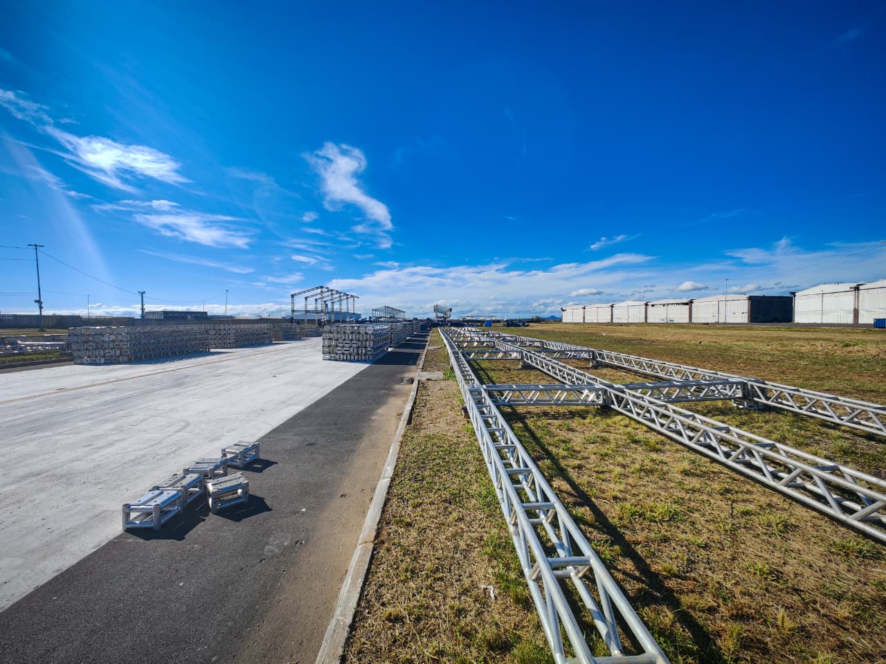 Montagem das estruturas para os desfiles do Carnaval 2026 no Complexo Cultural do Porto Seco