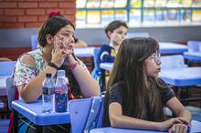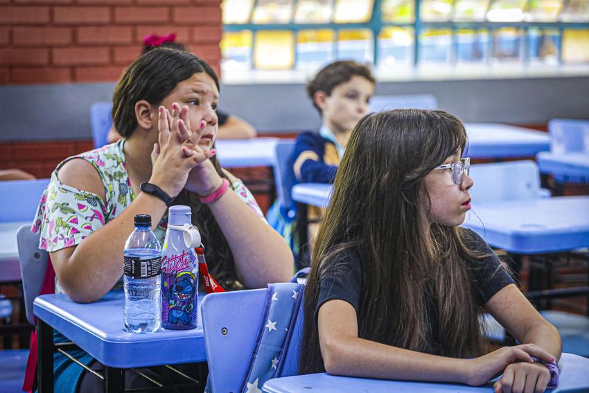 Porto Alegre, RS, Brasil, 18/02/2026: As aulas da rede municipal de ensino retornam nesta quarta-feira, 18, e as escolas já organizam uma recepção especial para acolher os estudantes após quase 60 dias de recesso. A proposta é marcar o início do ano letivo com atividades que reforcem o vínculo, o entusiasmo e o sentimento de pertencimento. Na Escola Municipal de Ensino Fundamental (Emef) Prof. Anísio Teixeira, por exemplo, os alunos foram recebidos com um espaço instagramável para fotos e distribuição de sacolés. Foto: Alex Rocha/PMPA