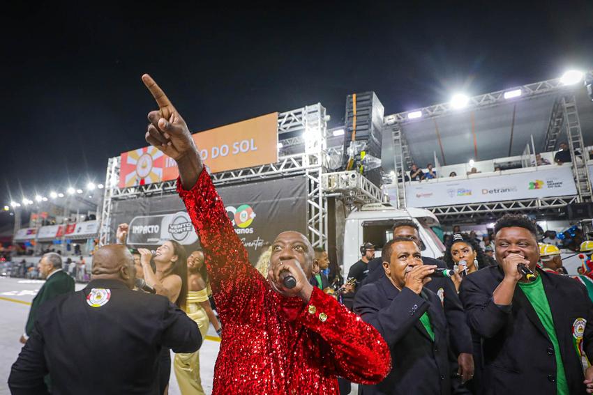 Porto Alegre, RS, Brasil, 27/02/2026: Nesta sexta-feira, 27, o Carnaval de Porto Alegre recebeu a S.C.B.C. Império do Sol. A escola de samba levou para o Complexo Cultural do Porto Seco o enredo Artesãos dos Sonhos, Construtores do Impossível, mas pode me chamar de Escola de Samba. A Império prestou uma homenagem aos operários do Carnaval, os verdadeiros magos que transformam materiais simples em luxo e poesia, celebrando o suor e a criatividade de quem dá vida aos desfiles. Foto: Alex Rocha/PMPA