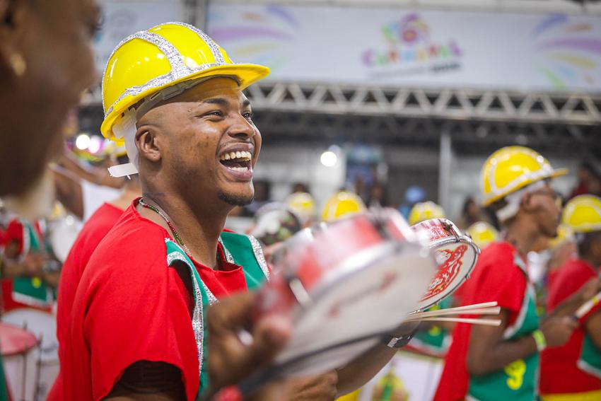 Porto Alegre, RS, Brasil, 27/02/2026: Nesta sexta-feira, 27, o Carnaval de Porto Alegre recebeu a S.C.B.C. Império do Sol. A escola de samba levou para o Complexo Cultural do Porto Seco o enredo Artesãos dos Sonhos, Construtores do Impossível, mas pode me chamar de Escola de Samba. A Império prestou uma homenagem aos operários do Carnaval, os verdadeiros magos que transformam materiais simples em luxo e poesia, celebrando o suor e a criatividade de quem dá vida aos desfiles. Foto: Alex Rocha/PMPA