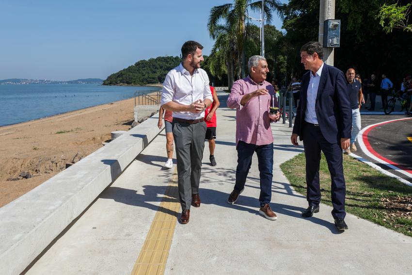 Porto Alegre, RS, 04/03/2026 - O prefeito Sebastião Melo e o secretário do Meio Ambiente, Urbanismo e Sustentabilidade e coordenador do Escritório de Reconstrução e Adaptação Climática, Germano Bremm, realizaram a vistoria final nas intervenções na Orla de Ipanema. Fotos: Pedro Piegas / PMPA