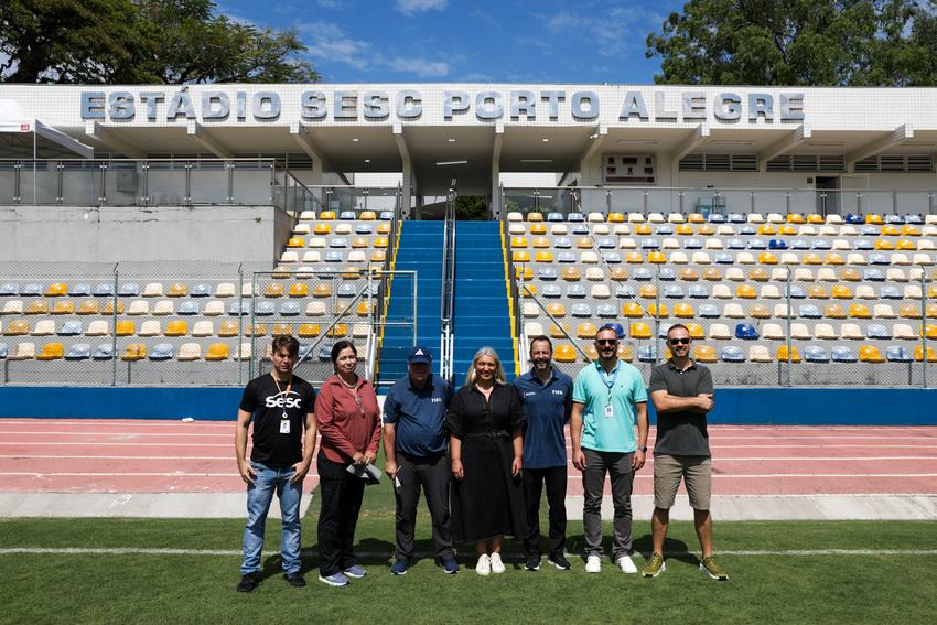 Porto Alegre, RS, 07/03/2026 - Vistoria nos campos de treinamento de Porto Alegre para a Copa do Mundo Feminina 2027. Na vistoria foram analisados gramado, drenagem e estrutura dos locais. Fotos no Sesc Protásio Alves. Fotos: Pedro Piegas / PMPA