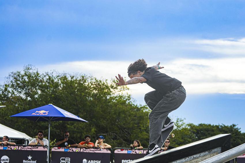 Porto Alegre, RS, Brasil, 21/03/2026: O STU National 2026 prossegue neste fim de semana, com a disputa das semifinais neste sábado, 21. A disputa, realizada no Trecho 3 da Orla do Guaíba, abrindo o circuito brasileiro de skate, reúne grandes nomes do país nas modalidades olímpicas street e park. Os ingressos gratuitos garantem acesso às arquibancadas e áreas comuns do evento. Cada pessoa pode retirar até dois ingressos, sendo que o ingresso solidário prevê a doação de 1 kg de alimento não perecível. A capital gaúcha recebe o STU pelo quinto ano consecutivo, com apoio da Prefeitura de Porto Alegre. Foto: Alex Rocha/PMPA