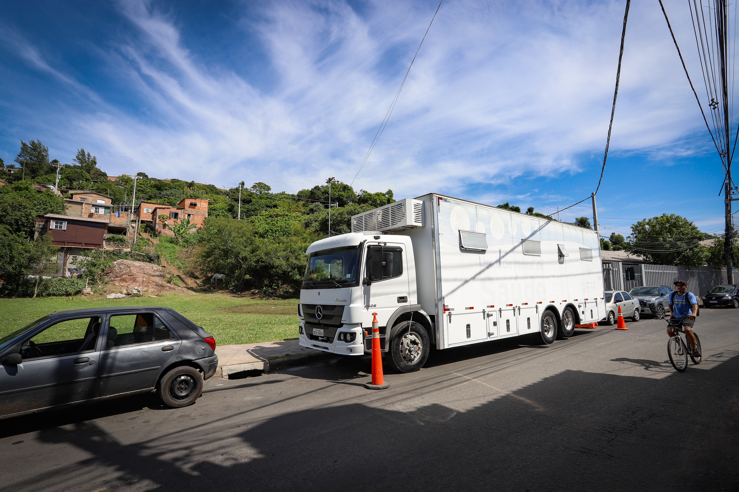 As duas unidades móveis da Secretaria Municipal de Saúde levaram atendimento as comunidades. O ônibus colorido (foto) está estacionado, de forma permanente na rua Dona Malvina, acesso A, 195, bairro Santa Tereza, em quanto a unidade de saúde Cruzeiro que está interditada para obras. Já a unidade móvel itinerante esteve, nesta segunda-feira, na rua Saibreira, s/nº, bairro Partenon. Foto: Cristine Rochol/PMPA