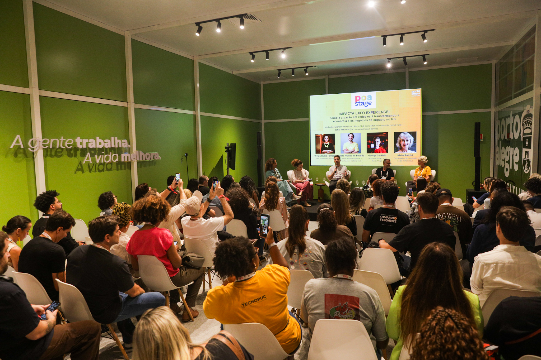 Porto Alegre, RS, 25/03/2026 - IMPACTA EXPO EXPERIENCE: Como a atuação em redes está transformando a economia e os negócios de impacto no RS no POA STAGE no South Summit Brazil 2026. Mediação: Michel Couto (Pacto Alegre/Hub Comunitário de Inovação Formô Hub) Sátira Machado (Pacto Alegre/Unipampa/IOS) Painelistas: Vívian Rubia Ferreira - ICE/Coalizão pelo Impacto; Pablo Munoz de Bustillo - Diretor Semente negócios e Fundador do Instituto Cória George Canfield - Diretor do Impact Hub Porto Alegre Maira Petrini - Coordenadora do Farol Hub Social do Tecnopuc. Fotos: Pedro Piegas / PMPA