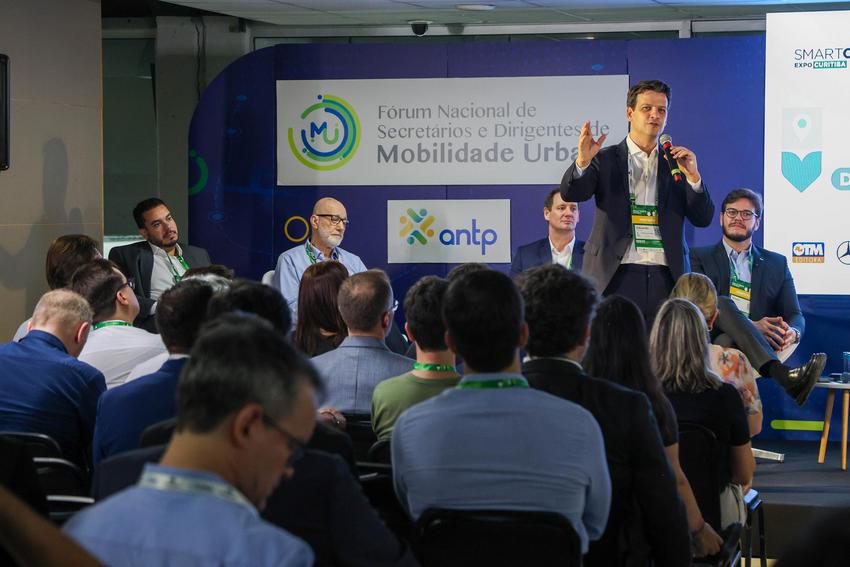 Curitiba, PR, 25/03/2026: O prefeito de Curitiba, Eduardo Pimentel, abre o Fórum Nacional de Secretários e Dirigentes de Mobilidade Urbana, que ocorre de 25 a 26 de março no Smart City Expo 2026. Durante a reunião, com participação do secretário de Mobilidade Urbana de Porto Alegre, Adão de Castro Júnior, será discutida a tramitação do projeto de lei do Marco Legal do transporte coletivo (PL 3278/2021), que visa reformular as regras do setor de mobilidade no Brasil, com foco em financiamento, qualidade e transparência, segurança jurídica e regulação. Foto: Pedro Ribas/ Divulgação/Prefeitura de Curitiba