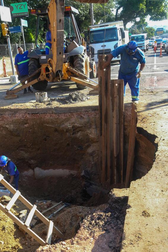 Porto Alegre, RS. 27/03/2026. DMAE realiza conserto em adutora na av. Ipiranga 6681, em frente a PUC-RS.