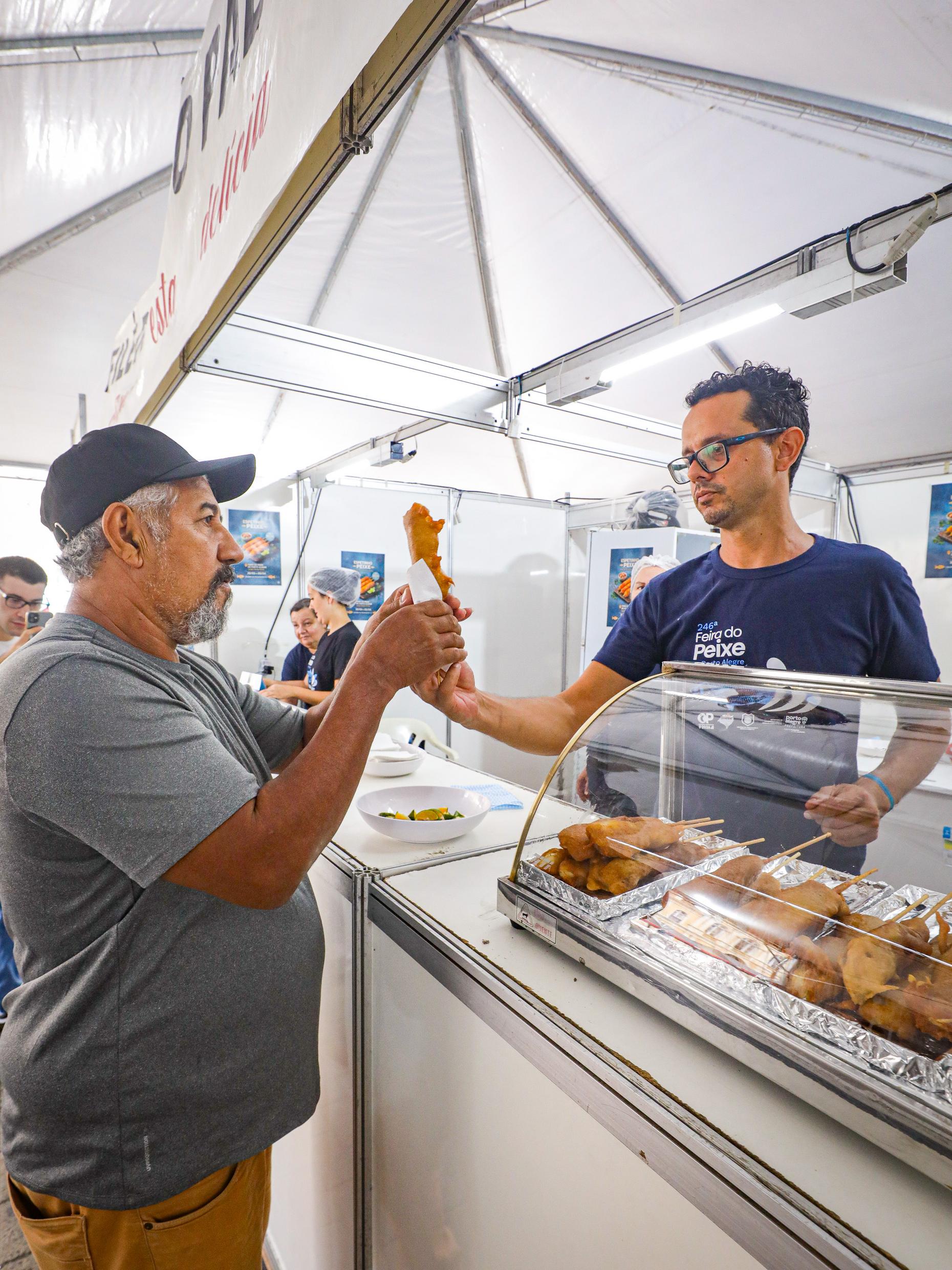 Porto Alegre, RS, Brasil, 30/03/2026: A 246ª Feira do Peixe de Porto Alegre terá o maior número de expositores já registrado desde que a prefeitura assumiu a organização do evento, com 51 bancas. No Largo Jornalista Glênio Peres, no Centro Histórico, a comercialização ocorrerá a partir desta segunda-feira, 30, até sexta-feira, 3, com horários ampliados - de segunda a quarta, das 8h às 22h, quinta-feira, das 8h à meia-noite e na sexta, das 8h às 13h. Outras regiões também receberão a feira, como a Esplanada da Restinga e o bairro Belém Novo, ampliando o acesso da população ao pescado. Foto: Alex Rocha/PMPA
