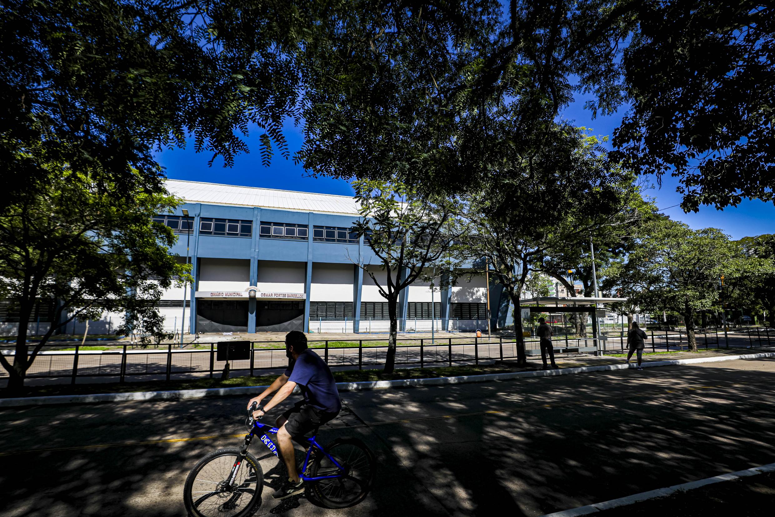 Porto Alegre, RS, Brasil, 01º/04/2026: A Prefeitura de Porto Alegre segue avançando nas obras de requalificação do Ginásio Tesourinha, um dos principais espaços esportivos da Capital. Com etapas já concluídas e outras em fase final de execução, o projeto contempla melhorias estruturais e tecnológicas que visam a modernizar o complexo e ampliar sua capacidade de atendimento à população. Foto: Alex Rocha/PMPA