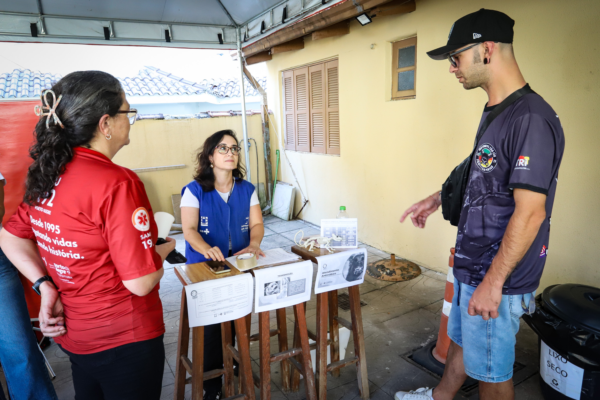 Representaram a Secretaria de Saúde de Porto Alegre as diretorias de Vigilância em Saúde, através do Centro de Referência em Saúde do Trabalhador (Cerest), Equipe de Vigilância de Doenças e Agravos não Transmissíveis, da Coordenação da Atenção às Infecções Sexualmente Transmissíveis, HIV/Aids, Tuberculose e Hepatites Virais (Caist) e do Samu. Também os técnicos da Eptc estiveram no local falando sobre atitudes seguras no trânsito. Foto: Cristine Rochol/PMPA