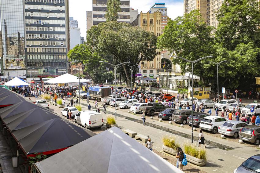Porto Alegre, RS, Brasil, 15/4/2026: Nesta quarta-feira, 15, a partir das 12h, ocorreu o tradicional Assado e Paella Solidária no Largo Glênio Peres. Foram distribuídos 1.250 quilos de carne e 900 quilos de paella gaúcha, acompanhados de pão, refrigerante e água. O chef de cozinha e coordenador dos assadores foi René Barbachan, tradicionalista, cozinheiro, assador e patrono do Acampamento Farroupilha de Porto Alegre em 2025, juntamente com José Roberto Maraschin. A atividade foi gratuita, contou com diversas atrações musicais, como a Banda da Brigada Militar, Fábrica de Gaiteiros, de Borguetinho, com apresentação de músicas gauchescas, além de pagode e samba. Elmer Fagundes e Marcelo Cachoeira também se apresentam em parceria com a Secretaria Municipal da Cultura. Foto: Alex Rocha/PMPA