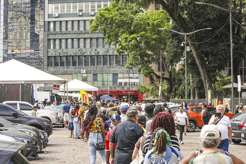 Porto Alegre, RS, Brasil, 15/4/2026: Nesta quarta-feira, 15, a partir das 12h, ocorreu o tradicional Assado e Paella Solidária no Largo Glênio Peres. Foram distribuídos 1.250 quilos de carne e 900 quilos de paella gaúcha, acompanhados de pão, refrigerante e água. O chef de cozinha e coordenador dos assadores foi René Barbachan, tradicionalista, cozinheiro, assador e patrono do Acampamento Farroupilha de Porto Alegre em 2025, juntamente com José Roberto Maraschin. A atividade foi gratuita, contou com diversas atrações musicais, como a Banda da Brigada Militar, Fábrica de Gaiteiros, de Borguetinho, com apresentação de músicas gauchescas, além de pagode e samba. Elmer Fagundes e Marcelo Cachoeira também se apresentam em parceria com a Secretaria Municipal da Cultura. Foto: Alex Rocha/PMPA