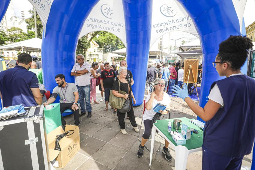 Porto Alegre, RS, Brasil, 15/4/2026: Nesta quarta-feira, 15, a partir das 12h, ocorreu o tradicional Assado e Paella Solidária no Largo Glênio Peres. Foram distribuídos 1.250 quilos de carne e 900 quilos de paella gaúcha, acompanhados de pão, refrigerante e água. O chef de cozinha e coordenador dos assadores foi René Barbachan, tradicionalista, cozinheiro, assador e patrono do Acampamento Farroupilha de Porto Alegre em 2025, juntamente com José Roberto Maraschin. A atividade foi gratuita, contou com diversas atrações musicais, como a Banda da Brigada Militar, Fábrica de Gaiteiros, de Borguetinho, com apresentação de músicas gauchescas, além de pagode e samba. Elmer Fagundes e Marcelo Cachoeira também se apresentam em parceria com a Secretaria Municipal da Cultura. Foto: Alex Rocha/PMPA