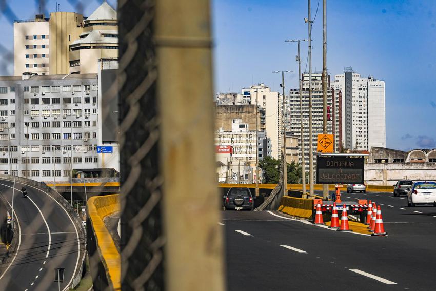 Porto Alegre, RS, Brasil, 20/4/2026: A Empresa Pública de Transporte e Circulação (EPTC ) começou na última sexta-feira, 17, uma campanha de conscientização sobre a sinalização e a velocidade nas avenidas Castelo Branco e Mauá. Como primeira iniciativa, foram instalados Painéis de Mensagens Variáveis (PMV) móveis com mensagens de advertência preventiva. Foto: Alex Rocha/PMPA