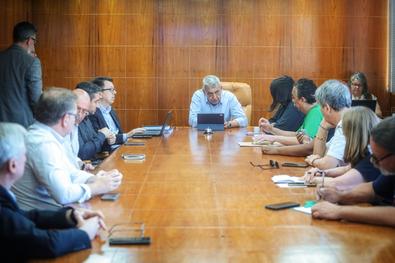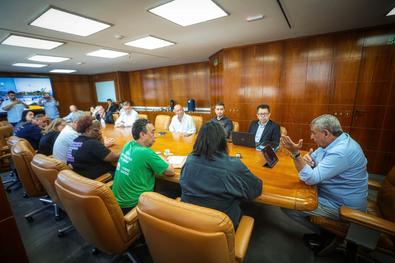 Porto Alegre, RS, Brasil 23/10/2025: Com a presença do prefeito, Sebastião Melo, foi realizada na manhã desta quinta-feira (23), na sala de reuniões do 17º andar do Centro Administrativo Municipal Guilherme Socias Villela (CAM), reunião entre integrantes do governo e do Sindicato dos Municipários de Porto Alegre (Simpa). Foto: Alex Rocha/PMPA