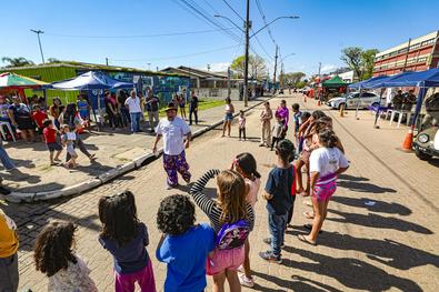 Porto Alegre, RS, Brasil, 09/10/2025: Uma ação conjunta da Brigada Militar, Prefeitura de Porto Alegre, Guarda Civil Metropolitana (GCM) e Empresa Pública de Transporte e Circulação (EPTC) levou uma tarde de atividades e alegria às crianças do Loteamento Santa Terezinha, no 4º Distrito, nesta quinta-feira, 9. Foto: Alex Rocha/PMPA