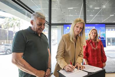Porto Alegre, RS, Brasil, 20/10/2025: O prefeito, Sebastião Melo, e a vice-prefeita, Betina Worm, participaram, na tarde desta segunda-feira (20), da cerimônia de posse da diretora-presidente da Companhia de Processamentos de Dados do Município de Porto Alegre (Procempa), Débora Roesler. Foto: Alex Rocha/PMPA