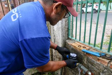 Porto Alegre, RS. 24/10/2025. DMAE As visitas às residências para troca de hidrômetro são realizadas por agentes identificados com uniformes e crachás da empresa Contágio, representada também pela sigla CCPO.