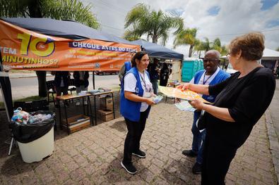 Porto Alegre, RS, 22/11/2025 A Esplanada da Restinga foi o local da mobilização contra dengue no Dia D promovido pela Diretoria de Vigilância em Saúde neste sábado, 22. Estiveram presentes profissionais da vigilância ambiental, agentes de combate a endemias e agentes comunitários de saúde. A atividade integrou a programação da 51ª Semana da Restinga. Foto: Cristine Rochol/PMPA