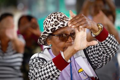 Porto Alegre, RS, 22/11/2025 Em alusão ao Dia da Consciência Negra, celebrado em 20 de novembro, a Secretaria Municipal de Saúde realizou um aulão gratuito de atividades físicas, conduzido pelos professores do Projeto Viver Mais e Melhor e aberto a toda a população. A atividade foi realizada na Esplanada da Restinga (Estr. João Antônio da Silveira, 2359), onde também ocorre a 51ª Semana da Restinga. Foto: Cristine Rochol/PMPA