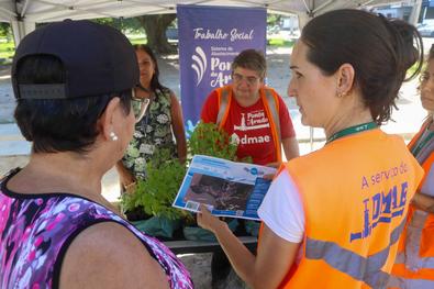 Porto Alegre, RS. 02/04/2026. DMAE através do Técnico Social do Sistema de Abastecimento de Água Ponta do Arado faz ação junto a 24 Feirado Peixe do Bairro Belém Novo.