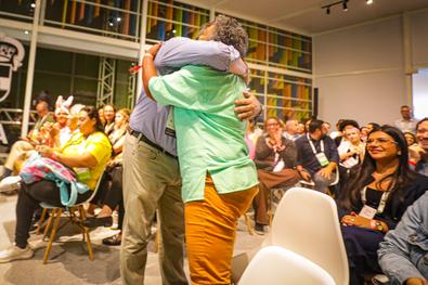 Porto Alegre, RS, Brasil, 25/03/2026: Na tarde desta quarta-feira (25), no espaço Arena Stage do South Summit Brazil 2026, foi realizado o Painel Como as plataformas liberam novas oportunidades, com a diretora-geral Brasil na Uber, Silvia Penna, e o cofundador do NeoFeed, Ralphe Manzoni Jr. Foto: Alex Rocha/PMPA