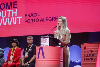 Porto Alegre, RS, 25/03/2026 - Cerimônia de boas vindas da manhã com a vice-prefeita de Porto Alegre, Betina Worm na Arena Stage, no South Summit Brazil 2026. Fotos: Pedro Piegas / PMPA