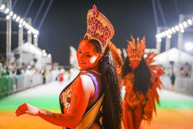 Porto Alegre, RS, Brasil, 27/02/2026: Nesta sexta-feira, 27, o Carnaval de Porto Alegre recebeu a S.C.B.C. Império do Sol. A escola de samba levou para o Complexo Cultural do Porto Seco o enredo Artesãos dos Sonhos, Construtores do Impossível, mas pode me chamar de Escola de Samba. A Império prestou uma homenagem aos operários do Carnaval, os verdadeiros magos que transformam materiais simples em luxo e poesia, celebrando o suor e a criatividade de quem dá vida aos desfiles. Foto: Alex Rocha/PMPA
